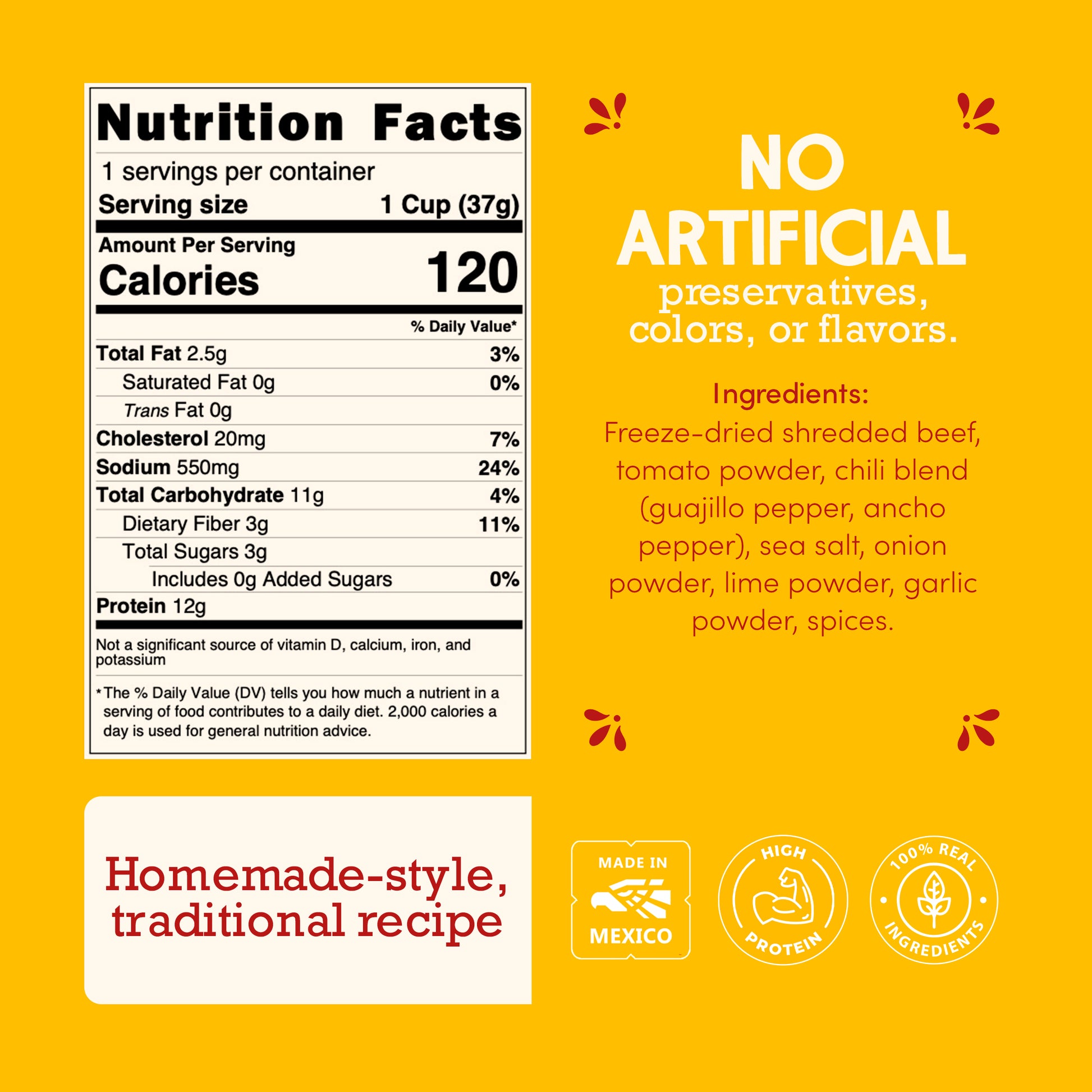 High in protein and featuring a clean label, it contains no artificial preservatives or flavors, ensuring you can indulge in this beloved dish without compromising on health or taste. Whether shared at family gatherings or savored solo, it is a delicious reminder of the vibrant culture that continues to inspire. Experience the authentic taste of Mexico.