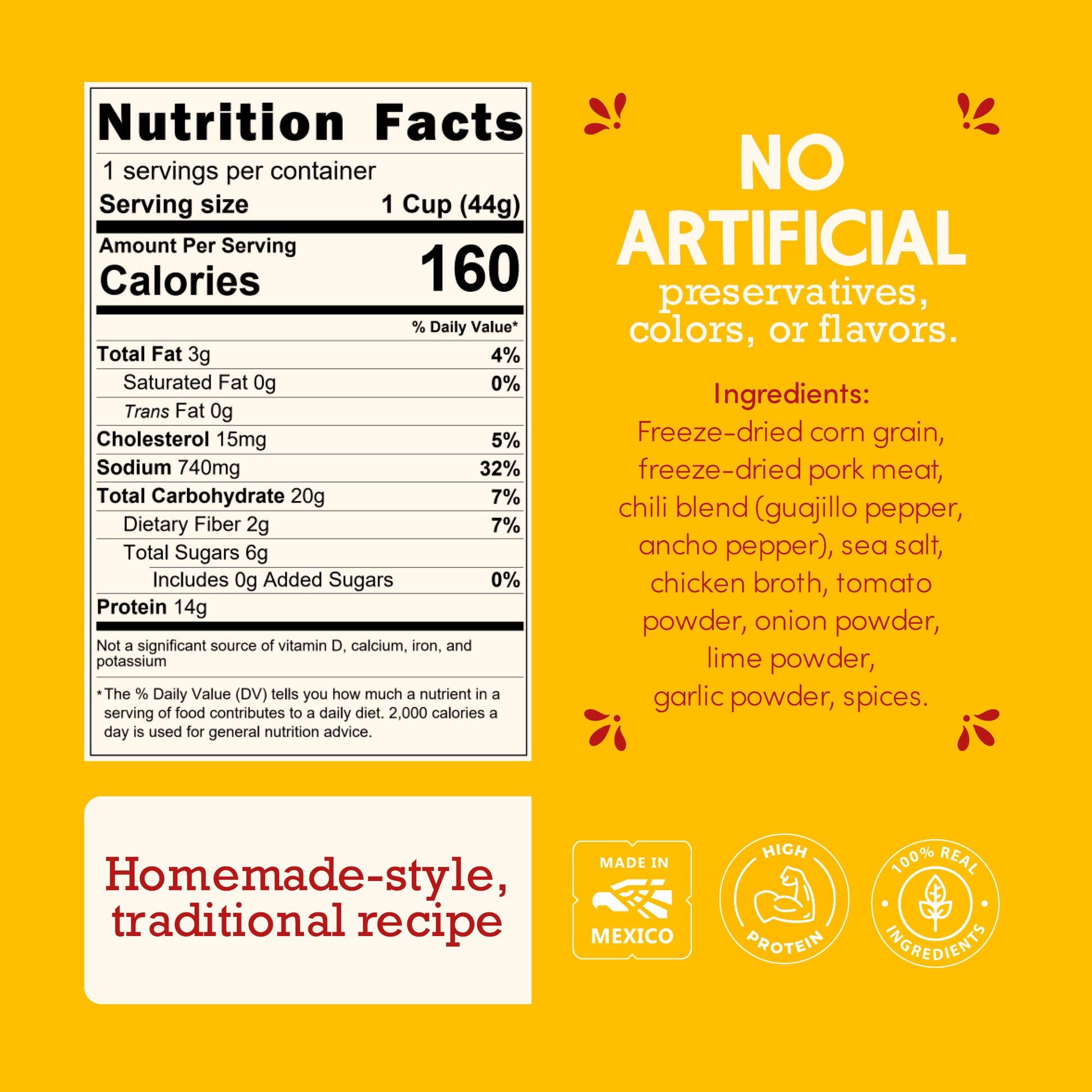 Now, the essence of pozole is available in a convenient form: Pozolazo. This instant soup allows you to enjoy authentic flavors in under ten minutes. Easy to prepare, Pozolazo embodies the spirit of Mexican culture while standing out for its high protein content and clean label, with no artificial preservatives or flavors.